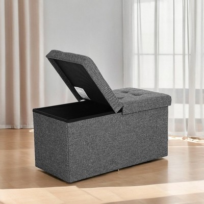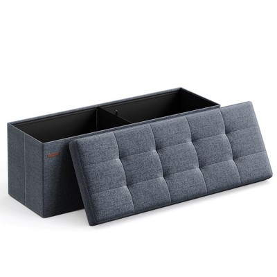 SONGMICS 30" Storage Ottoman Bench Folding Velvet Storage Footrest Stool 2 Extra Storage Boxes Hold up to 660lb Cream White