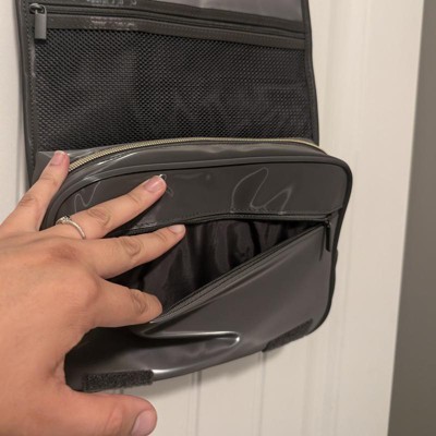 [This review was collected as part of a promotion.] This black plastic travel bag is perfect for travel. It’s lightweight and holds all of my cosmetic essentials without being too bulky. The hanging hook is very helpful, especially in small bathrooms while traveling. The separate compartments are convenient for packing a variety of things. It is also easy to clean with the shiny plastic material. With this price point I think it’s very reasonable and I would recommend. I received an incentive to write this review.