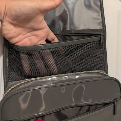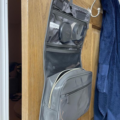 [This review was collected as part of a promotion.] This is very nice neutral travel case. It comes with a hook attached to hang from pretty much anywhere. I like the different zippered compartments to be organized. The items are also secured. I was able to add in plenty of items for a trip. There is a mesh compartment as well. This is really well made. The outside material is thick and sleek. It is a very good price. I received an incentive to write this review.
