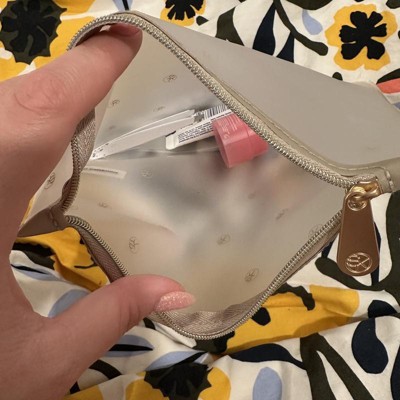 [This review was collected as part of a promotion.] I am going on a few trips this summer and this travel makeup bag will be perfect for flying. It is roughly the same size of a ziplock bag which should be TSA compliant. It holds a lot of product and big enough to accommodate makeup brushes. I really like the gold accents and it’s perfectly transparent enough to see the contents. It’s soft flexible plastic that’s easy to clean with soap and water and a fair price for a reusable travel bag. I received an incentive to write this review.