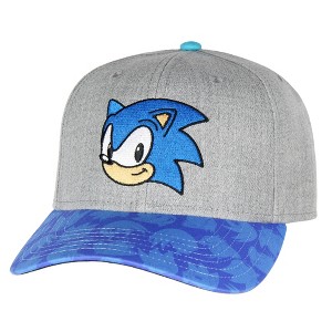 This is an Sonic hat. Sonic started as a video game you could only play on the SEGA console, but it can now be played on many different consoles. Sonic the Hedgehog is known for his mind-blowing speed and agility. Each of these Sonic the Hedgehog hats showcases an embroidered Sonic character face on the front of the crown. The pre-curved bill has an allover pattern with multiple characters from the series, like Sonic, Tails, Knuckles, and more! The Sonic hat has an adjustable snapback closure for a tremendous one-size-fits-most design. Make this your go-to Sonic baseball hat!