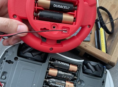[This review was collected as part of a promotion.] Came with three batteries, takes SIX AA’s The remote controller has a charging cord also takes batteries This car is FAST! Spins crazy fast, the controller is a wheel to make the kids feel like they’re REALLY doing it
