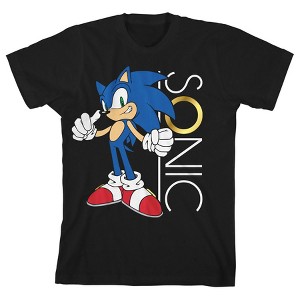 Sonic the Hedgehog Sonic with Ring Boy's Black T-shirt - 1 of 4