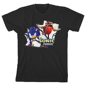 Sonic Vs Eggman Crew Neck Short Sleeve Boy's Black T-shirt - 1 of 3