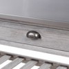 - Two storage drawers and metal gliders