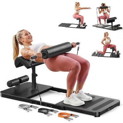 Soozier Foldable Sissy Squat Machine, Multipurpose Hip Thrust Machine with Push Up Stand, Black