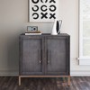 With natural rattan door panels, bold cylindrical wood and metal handles, and a brass-finished stainless-steel metal leg structure, the Sophia 2- Door Cabinet is ideal for any room in your home. The contrast of the discreet metal leg structure with the wood and rattan cabinet lends itself to this compelling modern design. This cabinet is versatile and can be used in various home settings. With a removable/adjustable shelf, you are ensured terrific interior storage for all your household needs.
