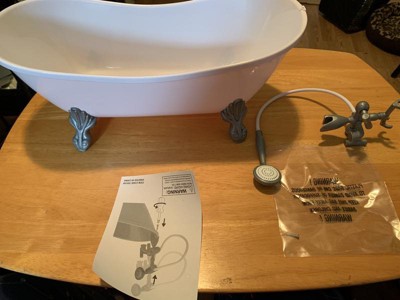 [This review was collected as part of a promotion.] The bathtub is so cute. It’s well-made the feet are so detailed it’s a really nice size tub. Very easy to put together you just need one screw that’s included. The handles really move the shower piece moves so your child can pretend they’re giving their dolly or stuffed toy a bath. It’s really a cute toy well-made.