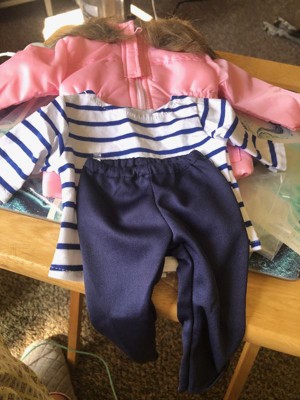 [This review was collected as part of a promotion.] My daughter loves this outfit for her doll. To jacket is adorable and really well made too. The clothes fit her doll perfectly and see like they will hold up well too. Living in Maine the winter jacket is a necessity for our baby dolls!