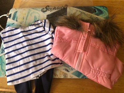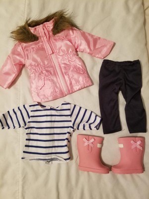 [This review was collected as part of a promotion.] This Sophia's - 18" Doll - Parka, Leggings, Stripe T & Wellies - Light Pink set is so cute. My dughter loves it. It fits her 18" doll perfectly, It came just in time as the winter was starting. It made a great addition to her doll outfits. Happy kiddo happy mommy!