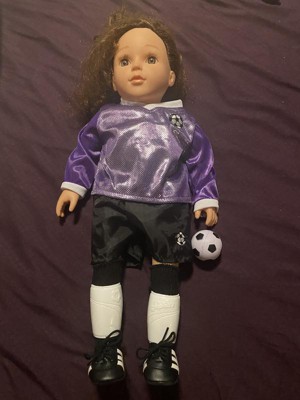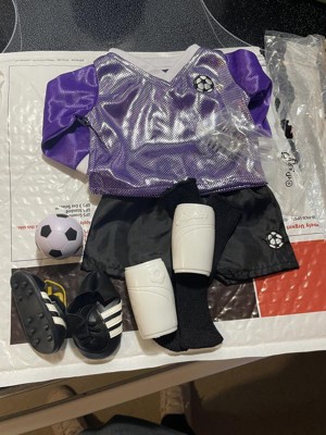 [This review was collected as part of a promotion.] The Sophia's - 18" Doll - Soccer Outfit, Ball, Socks, Cleats & Shin Guards - Purple/Black is so adorable, obviously it comes with a cute little soccer ball and shoes, but we also really like the purple color.