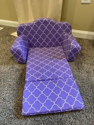 [This review was collected as part of a promotion.] This is such a cute little pull out sofa for our dolls. It fits all types of dolls and has such a pretty pattern and vivid purple color. The pull out sofa velcros in place so can be used separately when dolls go camping. The foam padding is so soft that I sometimes catch my 2 1/2 year old sitting on the doll sofa as he watches tv.