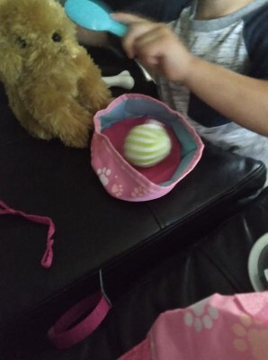 [This review was collected as part of a promotion.] Adorable little playset! I liked how it came with a lot of accessories and the soft zip up carrier. When child is done playing just put the puppy stuffed animal and all its accessories into the carrier for easier clean up and storage. My child enjoys playing with it and taking it along when we go out. Only complaint was the puppy was a bit squished up and misshapen a little from the packaging. But after awhile it kind of went back to normal shape it should be