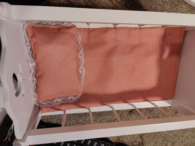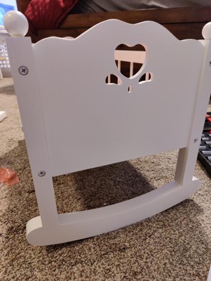 [This review was collected as part of a promotion.] I absolutely loved the Sophia's 16" Doll High End White Baby Cradle. This product is so beautiful to be a doll cradle. It has the cutest little hearts cute out on each end of the cradle, the size of it is perfect, it also comes with the cutest little pillow and matching sheet/mat set that are pink and the pillow has little strips of white lace around it giving it even more detail. It made easy to put together but its cut and designed to be a sturdy product that will last. I highly recommend this product.