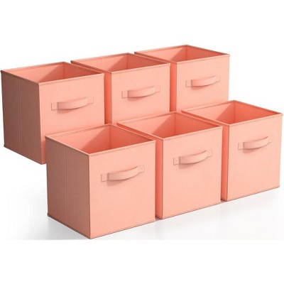 • Design Details: Made of nonwoven polypropylene and cardboard. Fabric storage bins measure approximately 13" L x 13" W x 13" H
