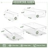 These versatile storage bins are perfect for organizing a wide range of items, from clothes and pantry staples to kitchen tools. Designed to fit seamlessly into closets, drawers, shelves, refrigerators, and freezers, they help maximize storage efficiency in any space. The transparent construction allows for quick visibility of contents, while built-in handles ensure easy access. Suitable for use across your home, these durable, BPA-free bins are your go-to essentials for a new home, providing stylish and functional organization solutions.