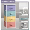 Give your household essentials a cozy landing spot with the Sorbus 4-Drawer Chest. This beautiful chest features a tabletop surface and pull-out drawers to tuck away household clutter. The thoughtful design is vertical for small living spaces and works equally well by the bed or sofa. Store anything from books, reading glasses, alarm clocks, clothing and other bedside necessities. The lightweight frame makes this unit easy to transport around the home and when not in use, simply fold the fabric drawers flat for storage. With everything you need right by your side, getting organized has never looked better! A great addition to any bedroom, closet, hallway, and more for instant storage. Set this charming storage in your master suite or guest room as a dresser for blankets, clothing, linens, and more with fresh flowers on the tabletop. In the nursery, the drawers help organize story books while the nightstand is the ideal height for a reading lamp. As a living room accent table, this unit provides sufficient space for remotes, coasters, and drinks, perfect for a movie night in or entertaining guests during the big game! This unique storage solution is easy to set-up with minimal assembly required. Showcasing a streamlined design, this four-drawer dresser chest stand is portable, lightweight, and easy to assemble. Hardware and instructions INCLUDED. Each removable drawer includes a built-in carry handle and made of breathable, non-woven fabric for soft-closing storage. Frame made of steel. Tabletop surface made of MDF wood with smooth finish.