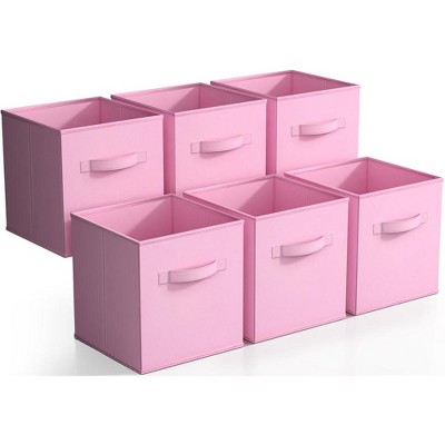 Sorbus 6 Pack 13 Inch Foldable Storage Cubes with Handles- for Organizing Home, Shelves, Nursery, Playroom, Closet and More Pink