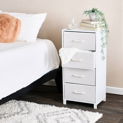 Keep your household clutter neatly tucked away in the Portable & Dresser for Clothes and more. The lightweight design allows for effortless transport and reorganization. This chest of drawers features removable fabric drawer shelves that are great for storing clothing, toys, & accessories.