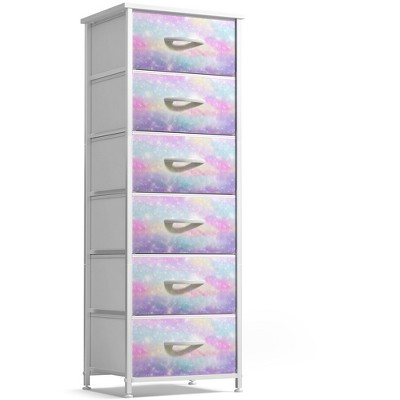 Keep your household clutter neatly tucked away in the Portable & Dresser for Clothes and more. The lightweight design allows for effortless transport and reorganization. This chest of drawers features removable fabric drawer shelves that are great for storing clothing, toys, & accessories.