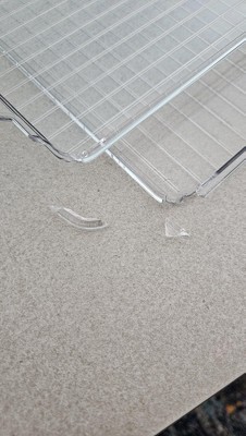 - Design Details: The Sorbus Storage Bins Made of strong clear acrylic plastic. BPA and Chlorine-free - Clean by hand - Do not place in the dishwasher - Measures approximately 11"L x 7.5"W x 6"H