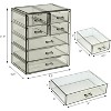 - FUNCTIONAL - CONVENIENT - Storage case fits on most dressers - Drawers are perfect for storing lipsticks- foundations- bronzers- blushes- eye shadows- primers- powders- etc - Can also be used to store jewelry- personal accessories- grooming tools- keepsakes- and much more