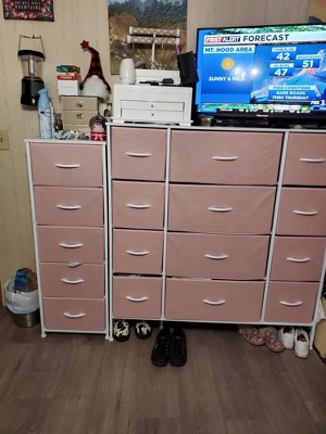 - 5 Drawer Fabric Storage Dresser - Sorbus Tall Storage Dresser Tower features a sturdy steel frame, polyester fabric drawers, durable handles, and a wooden, water-proof top.