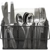 - CLEVER ORGANIZATION Holds plenty to keep items organized and within reach Features 1 large and 3 small compartmentsClassic black finish complements any theme or décor with a stylish mesh design Durable and made of steelAccommodates standard size napkins and utensilsMeasures approximately 8.75L x 6.87W x 4.87H