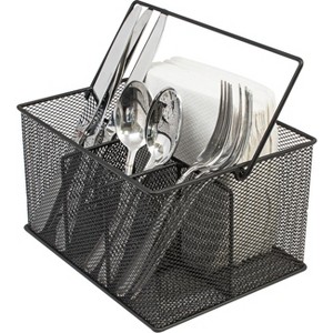 - MESH UTENSIL & CONDIMENT CADDY(BLACK) Serve and display everyday utensils, napkins, and condiments, with a built-in four compartment mesh caddy featuring a convenient carrying handle -Keep your favorite sauces, spreads, supplies, and much more organized, upright, and easily accessible