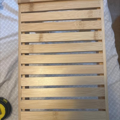 - Design Specifications: Features slatted step stool design - Made of 100% bamboo construction - Color is natural - For indoor use - Wipe clean - Minimal assembly required