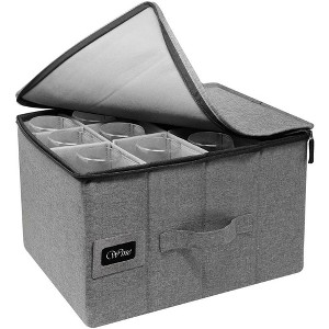 - Durable padded design: Minimal assembly - Glassware storage containers feature a top loading design - Zipper closure - Conveniently stackable - Sturdy frame with fully-padded interior - Made of 100% polyester exterior + non-woven fabric and PP board support interior - Clean with damp or dry cloth - Measures approximately 15.75" L x 12" W x 10" H