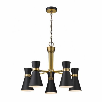 A decorative silhouette shapes industrial influence that adds casual elegance to this matte black finish metal pendant light. Dress up a main living space or entryway with this tasteful fixture trimmed with heritage brass finish steel. This sleek pendant captures the heart of romantic industrial charm. Bedroom/Dining Room/Dinette/Foyer/Hallway/Kids Room/Kitchen/Kitchenette/Living Room/Office No. of Rods: 8 Shade Included: Yes Cord Length: 110.00 Rod Length(s): 12.00 Dimmable: Yes