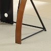 Work efficiently and with style with the miBasics Soron Computer Desk in Oak and Black. The eye catching curved wood slats and metal rods create interesting textural variety with a sophisticated arched silhouette. This office desk conserves desktop space with its lower pull out keyboard shelf. The tempered glass desktop of the miBasics Soron Computer Desk in Oak and Black lets light flow through while the back panel keeps your view tidy by concealing cords and plugs.