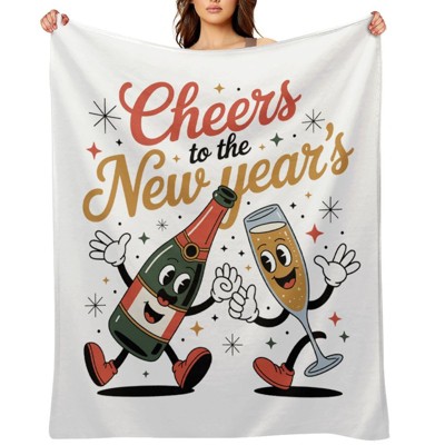 Soscooter 2026 New Year Flannel Blanket Cheers to Bright New Year Cute Pet Snowman Pattern Soft Cozy Holiday Throw Blanket 60x80 inches