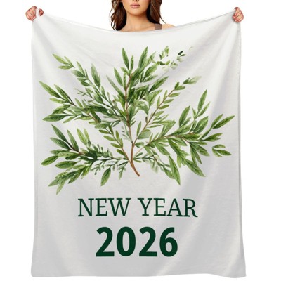 Soscooter 2026 New Year Flannel Blanket Watercolor Greenery Pattern New Year 2026 Soft Cozy Decorative Throw Blanket for Holiday Home 30x40 inches