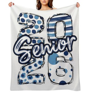 Soscooter 2026 Senior Flannel Blanket Blue Polka Dot Stripe Design Soft Cozy Throw Blanket Home Decor Gift