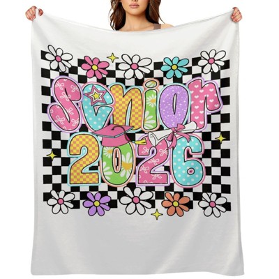 Soscooter 2026 Senior Happy New Year Flannel Blanket Black White Checkerboard Pink Pattern Throw Blanket For Holiday Gift Home Decor