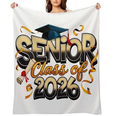 Soscooter 2026 Senior Happy New Year Flannel Blanket Grad Cap Diploma Pink Blue Pattern Throw Blanket For Holiday Decor Home Comfort