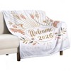 Soscooter 2026 Welcome New Year Flannel Throw Blanket Botanical Decor Retro Pattern Festive Cozy Holiday Blanket