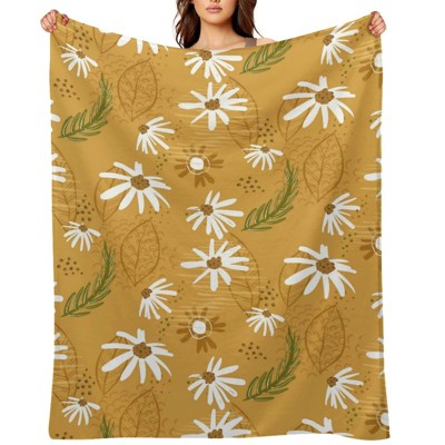 Soscooter Black Flannel Blanket Soft Cozy Floral Blanket with White Daisies Yellow Tulips and Green Leaves for Bed Couch