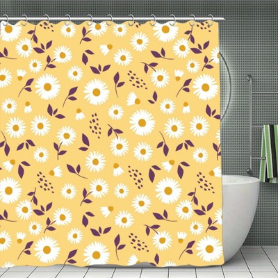 Soscooter Daisy Flower Leaf Shower Curtain Polyester Waterproof Machine Washable for Bathtub Shower Room Divider Bathroom Decor 70.8x70.8Inch