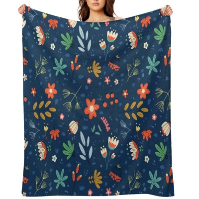 Soscooter Flannel Blanket Dark Blue Tropical Floral Leaf Pattern Soft Warm Throw Blanket for Sofa Bedroom Home Decor