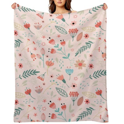 Soscooter Flannel Blanket White Base Yellow Pink Floral Green Brown Leaf Pattern Soft Cozy Throw Blanket for Couch Bedroom Decor
