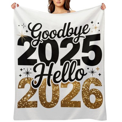 Soscooter Happy New Year Flannel Blanket Disco Ball Bow Design Soft Warm Decorative Throw Sofa Cover Holiday Gift for 2026 Celebration