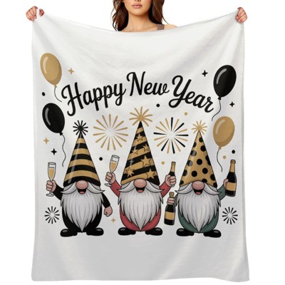 Soscooter Happy New Year Flannel Blanket Disco Ball Bow Design Soft Warm Decorative Throw Sofa Cover Holiday Gift for 2026 Celebration