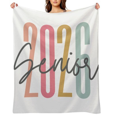 Soscooter Senior Class of 2026 Flannel Blanket Vibrant Colorful Letter Design With Stars Flowers Soft Cozy Throw For Graduation New Year