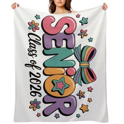 Soscooter Senior Class of 2026 Flannel Blanket Vibrant Colorful Letter Design With Stars Flowers Soft Cozy Throw For Graduation New Year