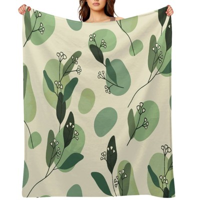 Soscooter Soft Flannel Blanket Light Beige With Pink Orange Floral And Green Leaf Pattern Cozy Throw For Sofa Bedroom