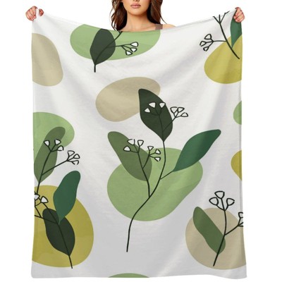 Soscooter Warm Flannel Throw Blanket Light Brown With White Leaf Floral Pattern Soft Cozy Blanket For Bedroom Sofa