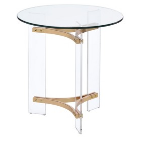 - Round End Table, Tempered Glass Table Top, Arcylic & Metal Frame